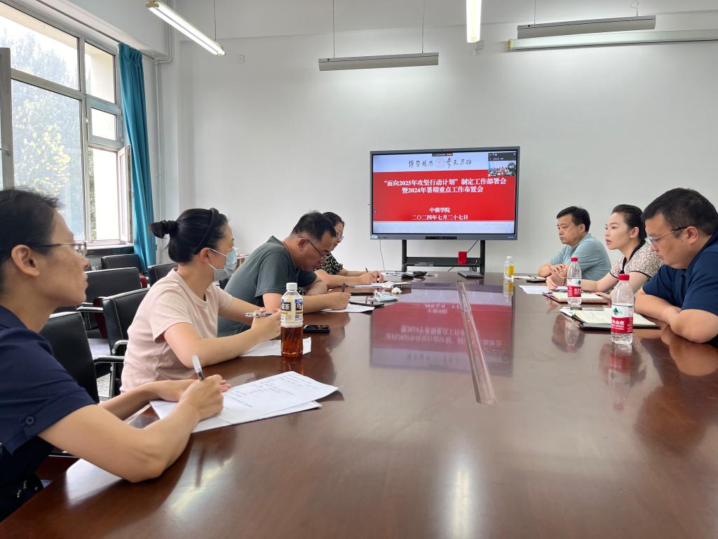 7月27日,中俄学院通过线上、线下相结合方式在学院203会议室召开“面向2025年攻坚行动计划”制定工作部署会暨2024年暑期重点工作布置会。中俄学院党总支书记张丽丹,党总支副书记周波,副院长唐伟、徐美玲以及全体教师参加。会议由张丽丹主持。