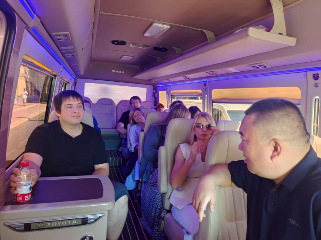 去参观的途中,王琦为俄方专家详细介绍了哈尔滨的发展史以及城市建筑中的俄式风情。俄方专家对哈尔滨保留完好的历史遗迹表示称赞,并围绕冰雪文化、音乐之都的建设等话题,与王琦进行了热烈交流。